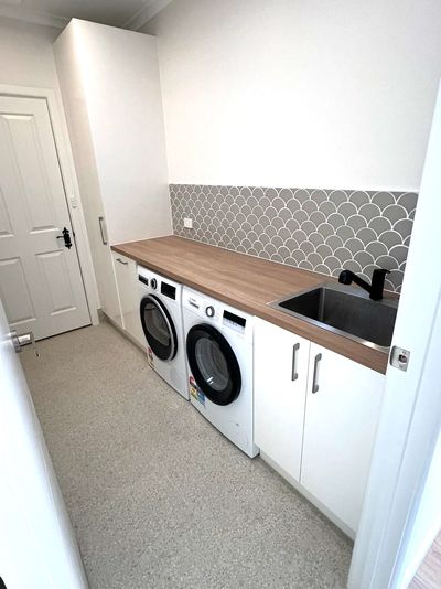 Since the laundry is prone to water exposure, choosing moisture-resistant materials is a must. Full waterproofing prior to tiling will be undertaken to ensure longevity. A tiled splashback behind sinks and benches will protect walls from moisture while adding a stylish feature.